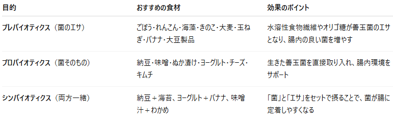 腸内フローラを整えるには、「菌を入れる」+「菌を育てる」の両方が大切です。